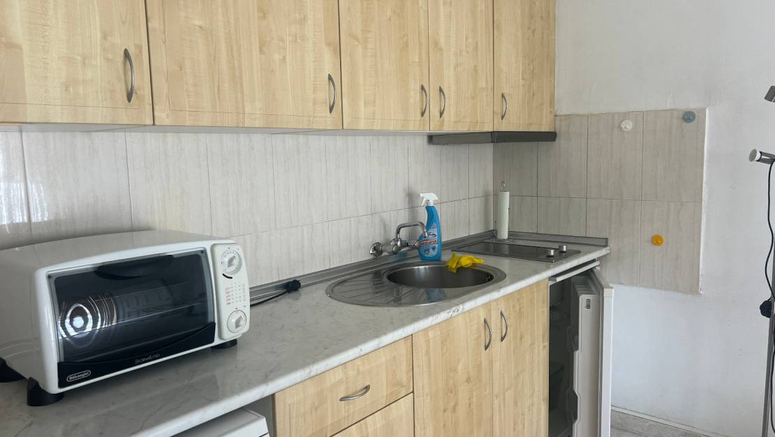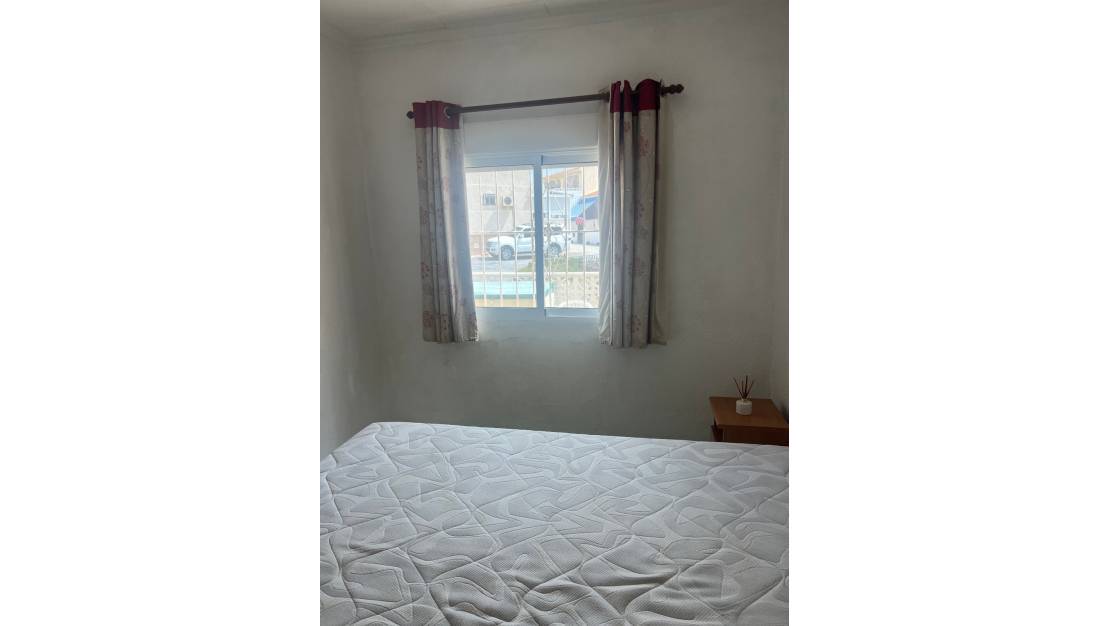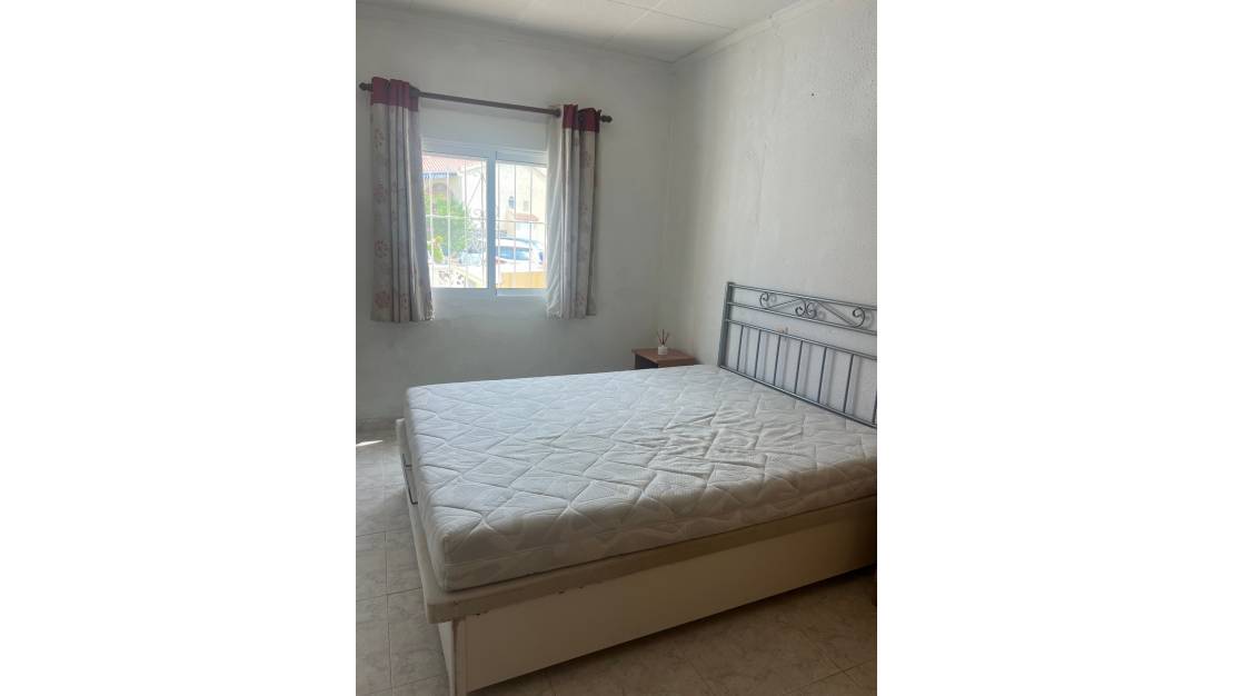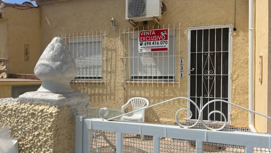 Pequeño adosado tipo Josefina con un dormitorio, salón-cocina y baño. Delante de la casa hay una terraza para tomar el sol y aparcamiento.