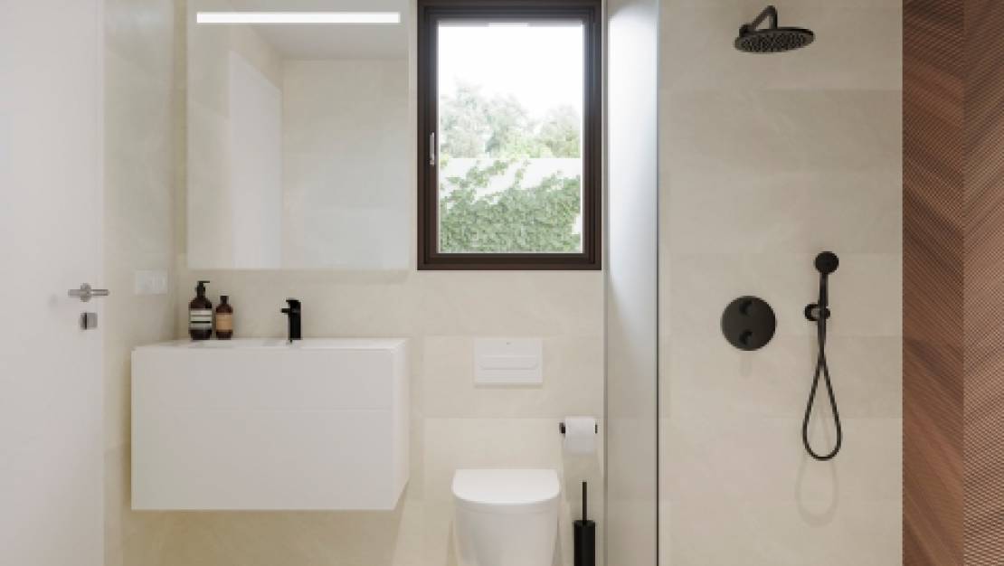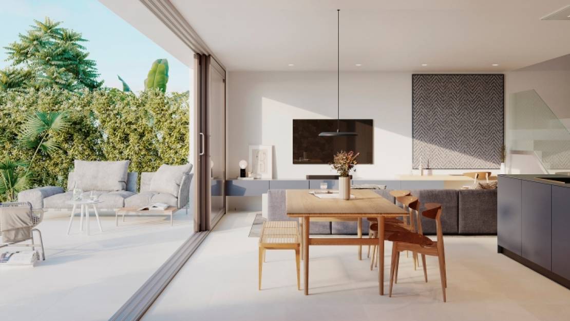 El diseño uno incluye dormitorio en suite con baño abierto. Conectado a una terraza mediterránea de 12 metros cuadrados.