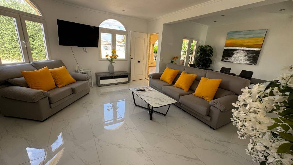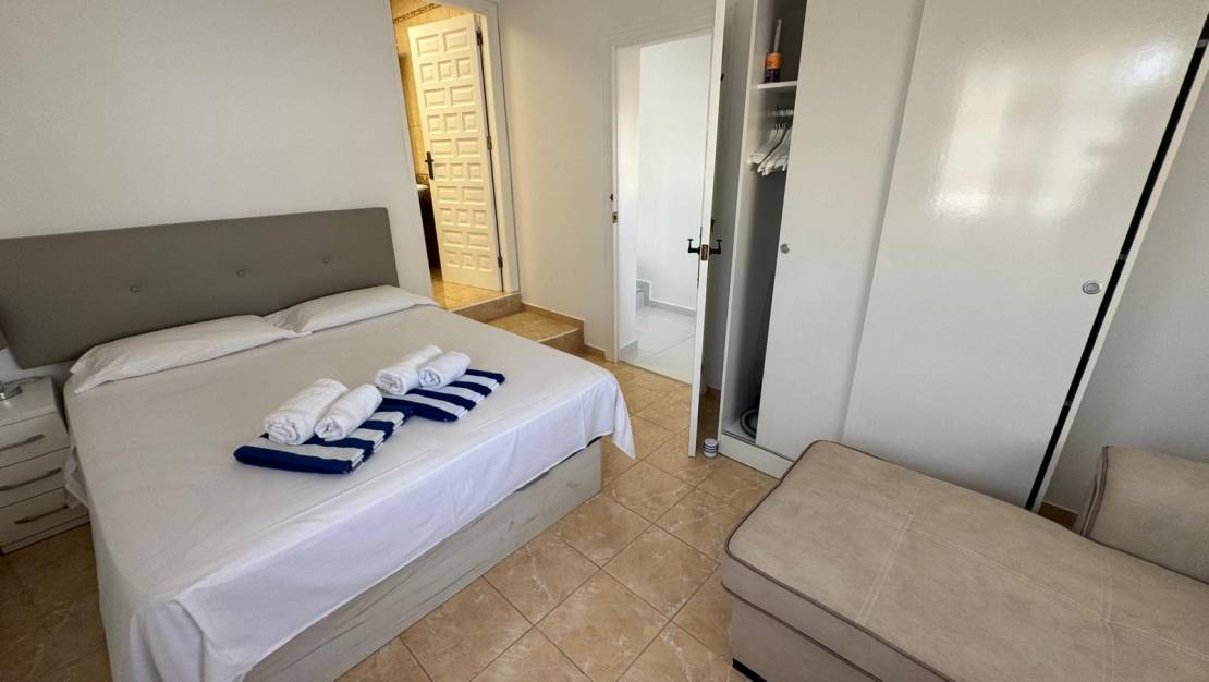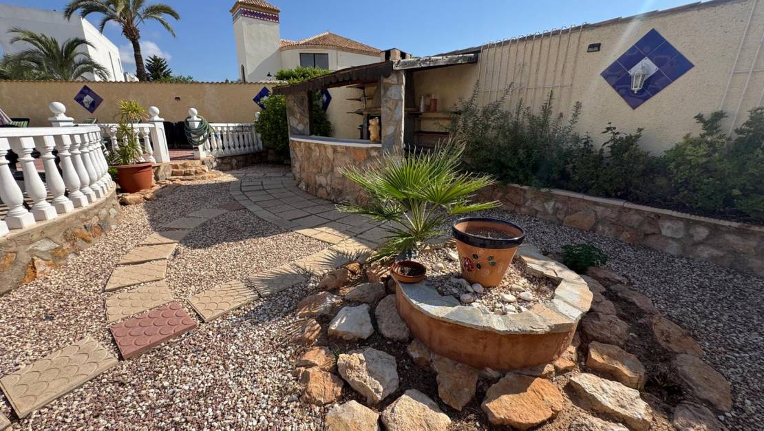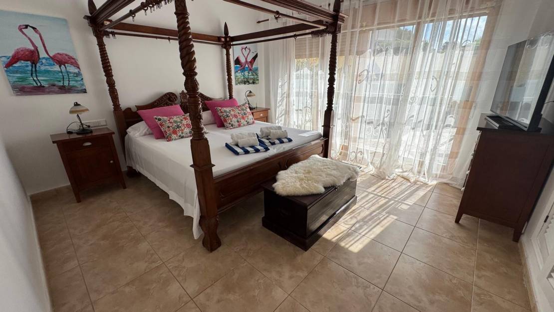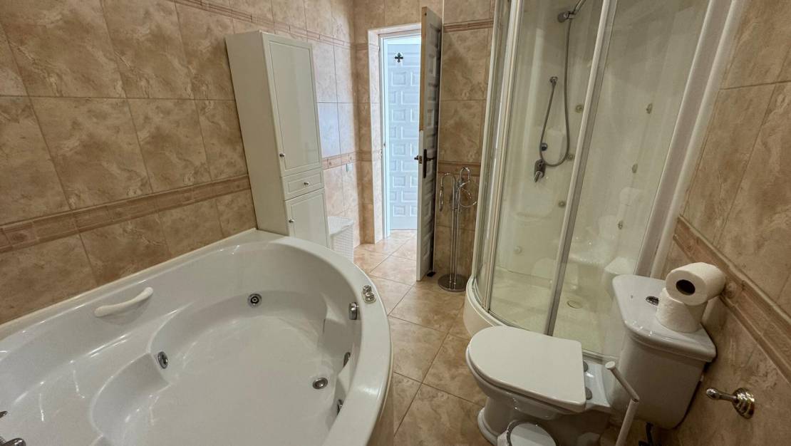 This large, inviting, light-filled villa in Mediterranean style offers plenty of space and 3 spacious bedrooms and 3 bathrooms, a fitted kitchen and many cosy nooks and crannies, making it ideal for large families. The quiet La Siesta is a residential area near the salt lakes of the Parque Natural de Torrevieja with its many animal species. One of the lakes is famous for its striking pink colour.