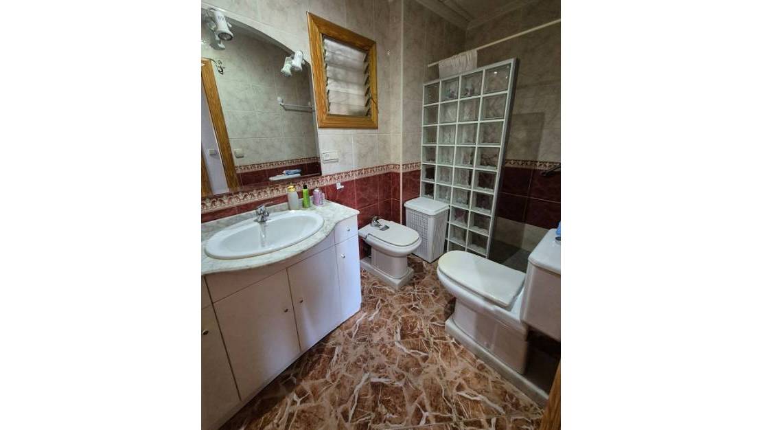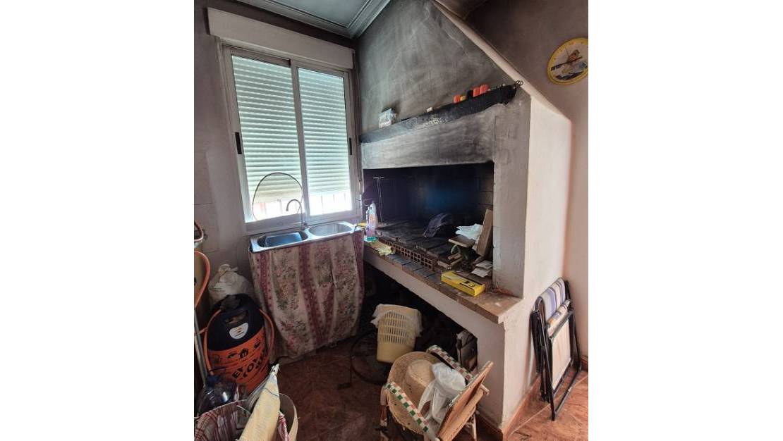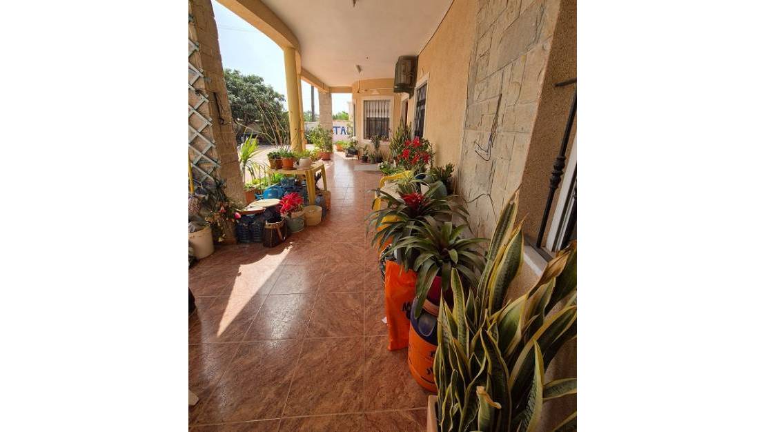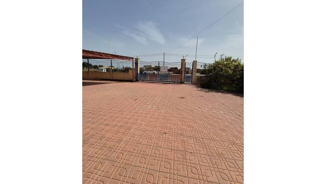 Villa in La Marina measuring 139 m2 with 3 bedrooms, 2 bathrooms, living/dining room, fireplace, separate kitchen, storage room, air conditioning, terrace, and barbecue. Garage measuring 340 m2 with three-phase electricity and toilet. Plot measuring 927 m2. Quiet area in an excellent location, just 1 km from the beach.