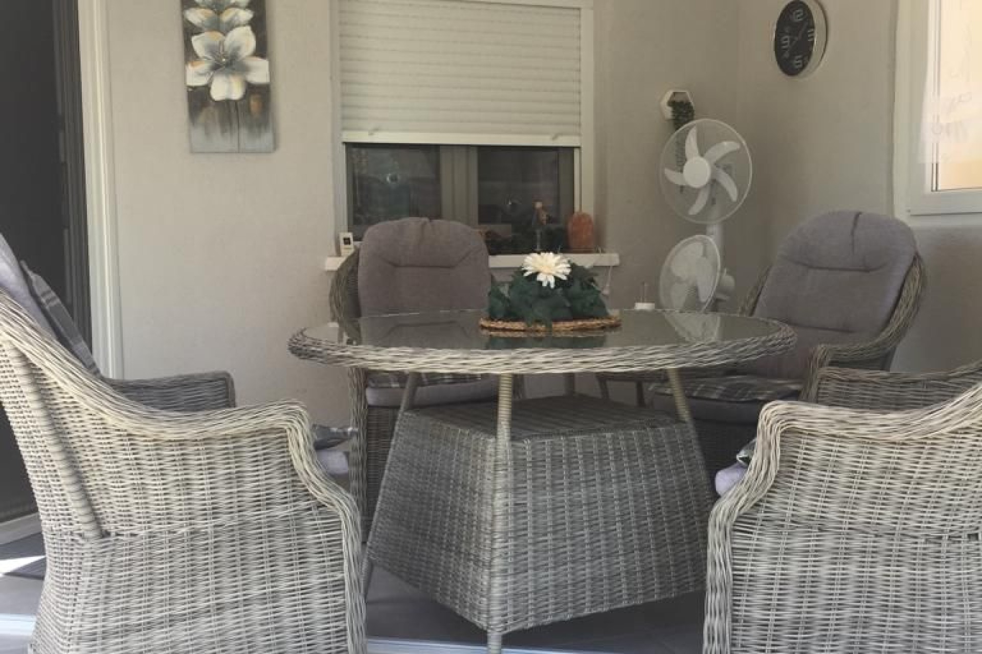 This modern renovated terraced house is situated in the beautiful urbanisation Buenavista, directly at the pine forest which leads to the kilometres long beaches. Despite the quiet location you can reach bars, restaurants, public baths, SPA and supermarket within walking distance. The recently modernised house has an open plan living, dining and kitchen area with guest toilet on the ground floor. The terrace can easily be converted into an enclosed conservatory and therefore offers more living space that can be used all year round.
