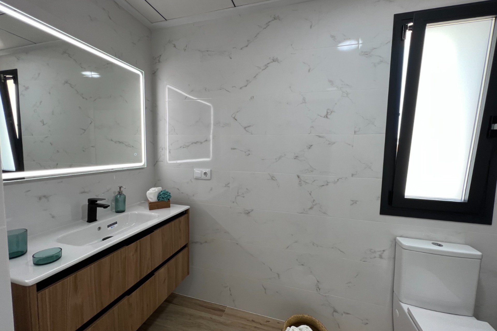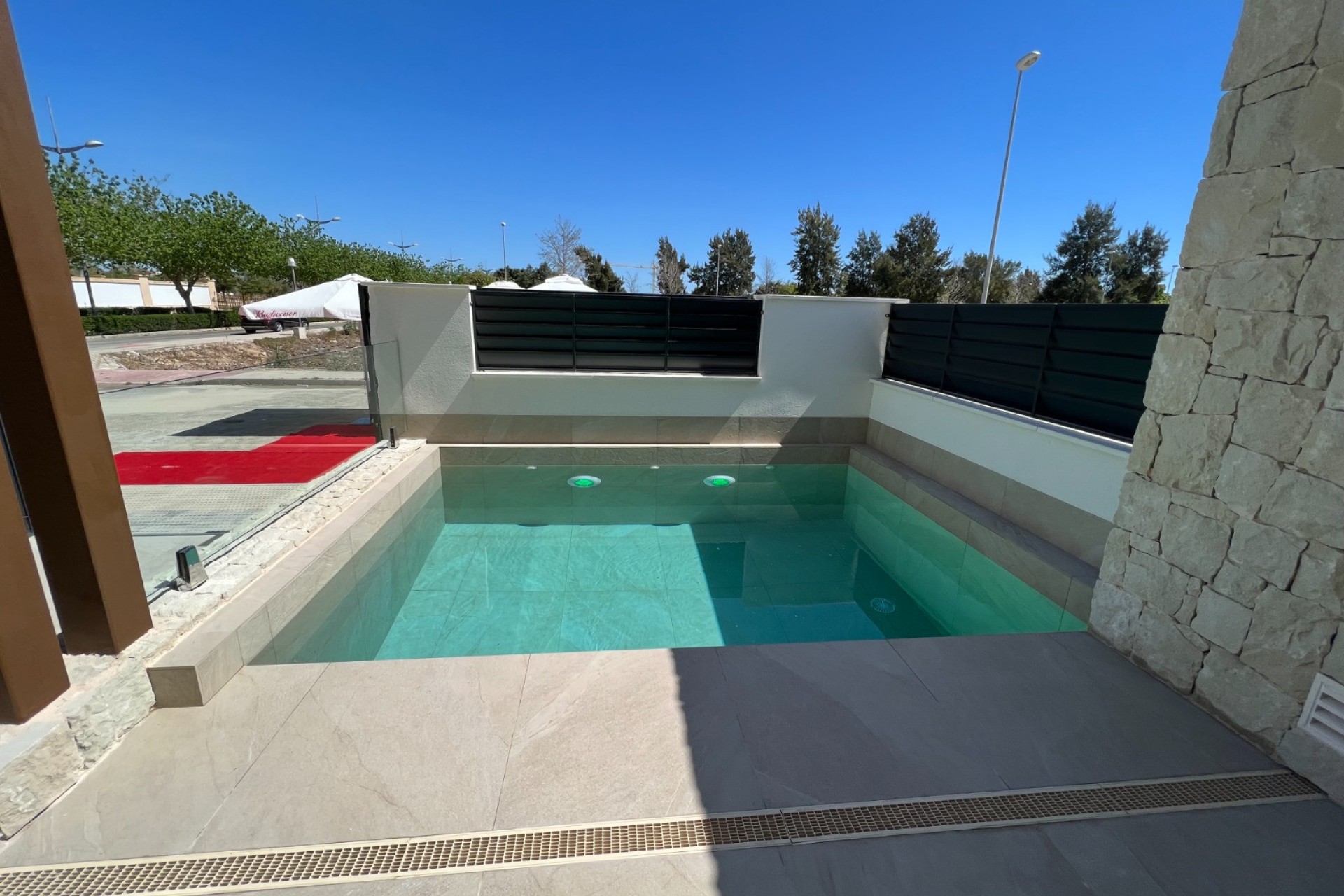 Spacious detached houses with private pool, garden and beautiful terrace. 3 bedrooms and 3 bathrooms as well as a large living, kitchen and dining area offer a high level of living comfort. The selling price already includes many extras, interior and exterior lights, pre-installation air conditioning, electric shutters, electric car entrance and much more. The surrounding area of Dolores offers a wide range of stores, culture, restaurants and bars. The beautiful beaches of the southern Costa Blanca can be reached in a few minutes by car. Contact us for further details, current availability and information on the progress of construction.