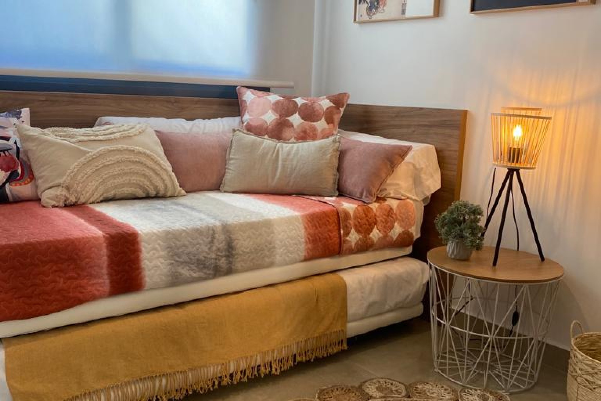 Ground floor flats with private garden, 61m² living space with 2 bedrooms, 2 bathrooms, open-plan kitchen, living and dining area. From €249,900. Penthouses with large roof terrace and beautiful panoramic views from €279,900.00.