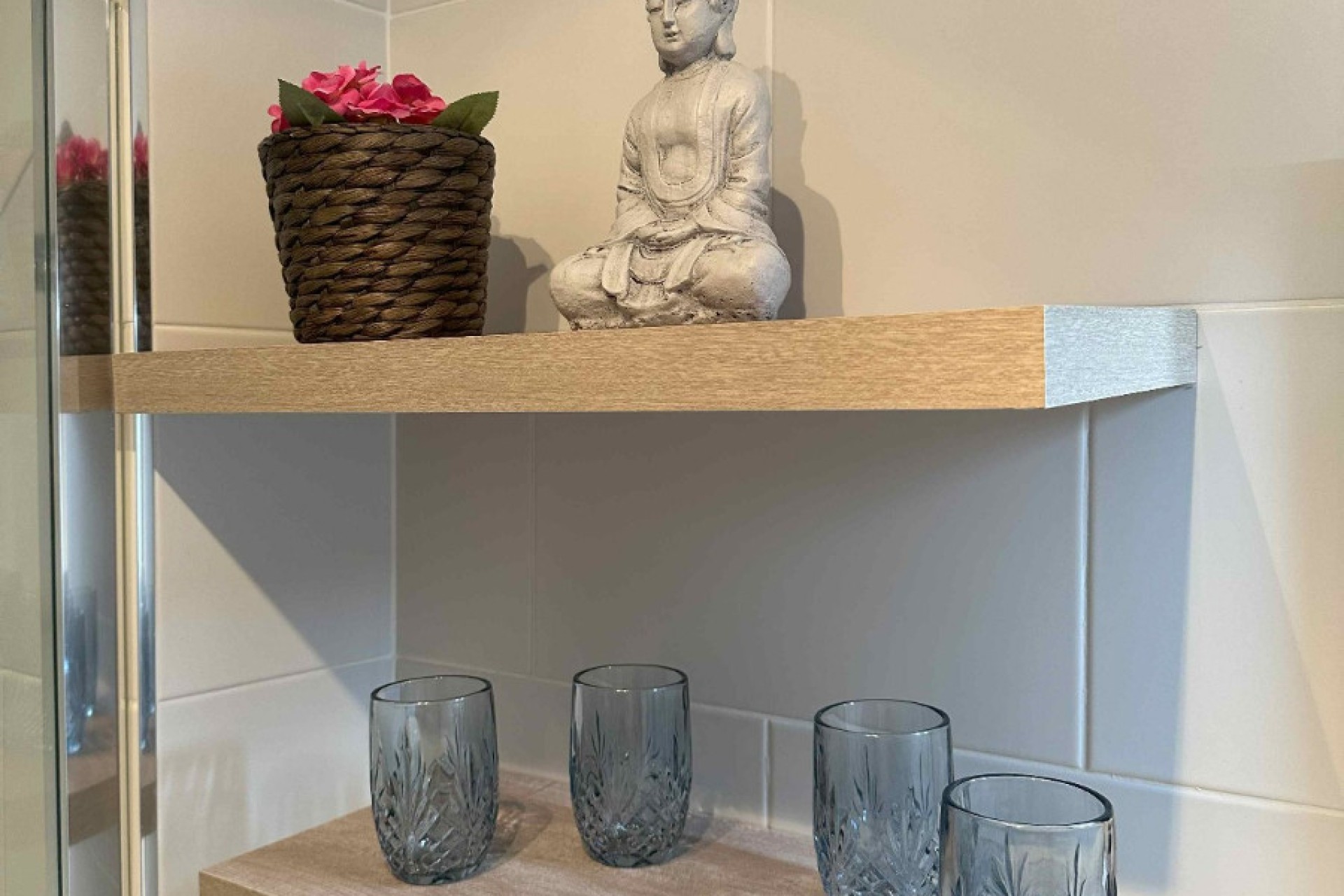 Beautifully renovated flat on the 1st floor with private roof terrace and marvellous views of the pool and communal garden. The flat has a total of 55 m² with 2 bedrooms, 1 modern bathroom, kitchen and living area, with a balcony in front. Viewings by appointment.