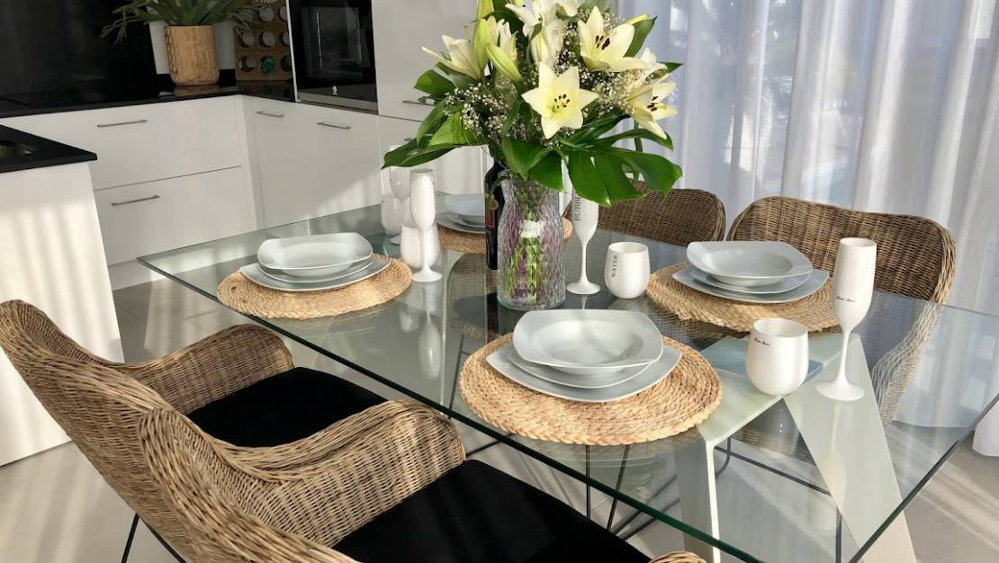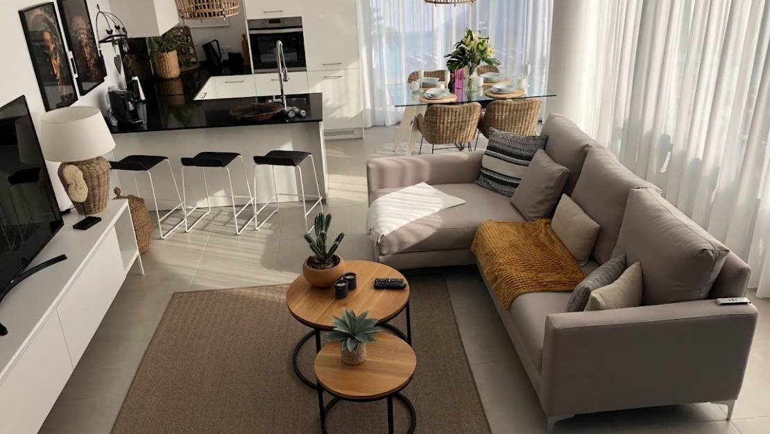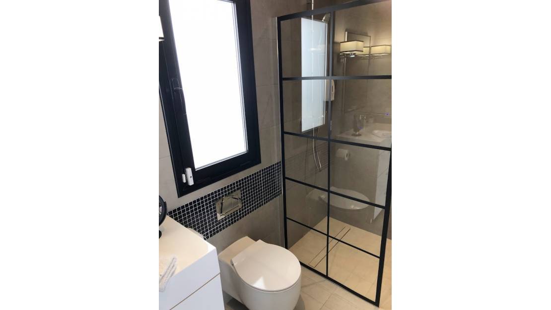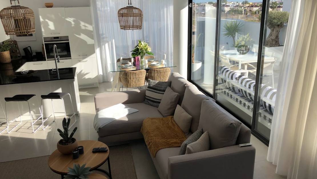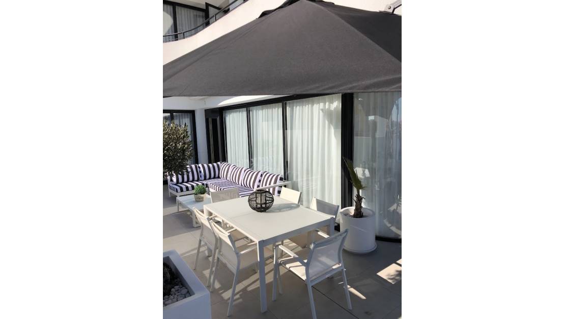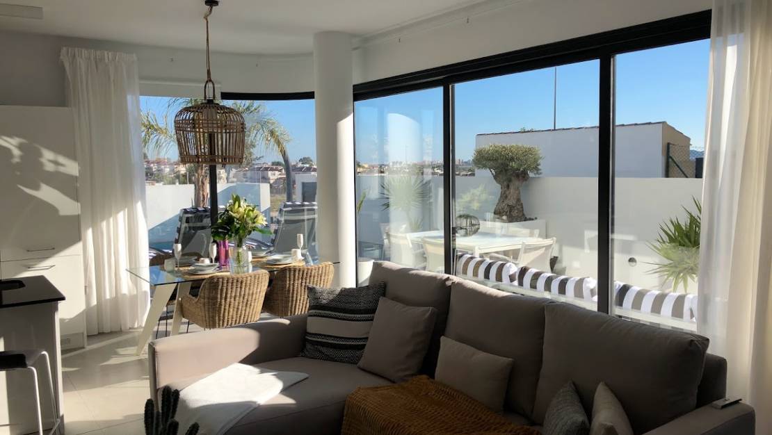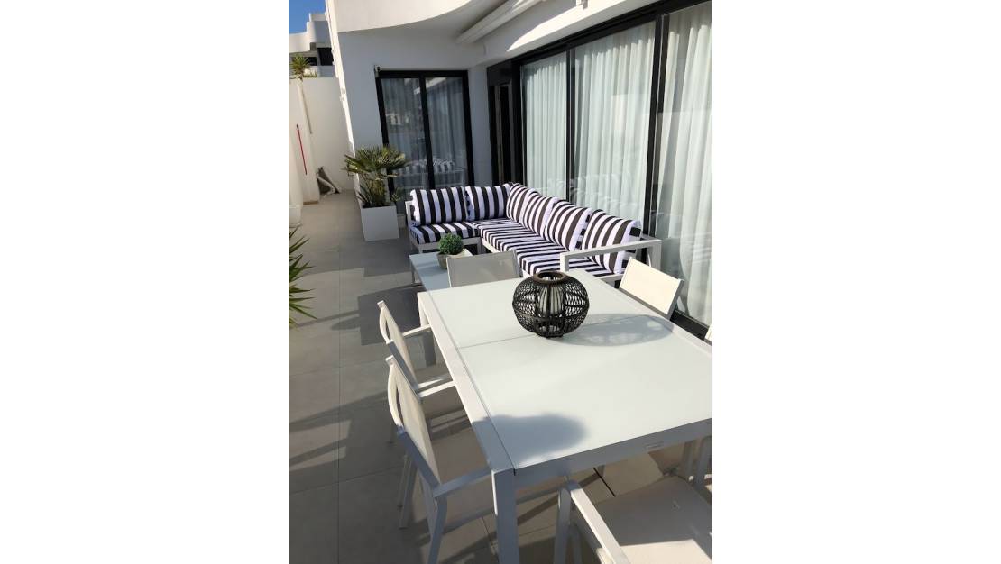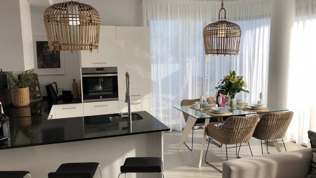 There is also an outdoor shower in the solarium and also in the pool. Parking / gated entrance to the property. Inside, the furniture is partly from Spanish companies, but armchairs, lamps, stools, chairs and many others are from the Dutch company Riviera Maison.