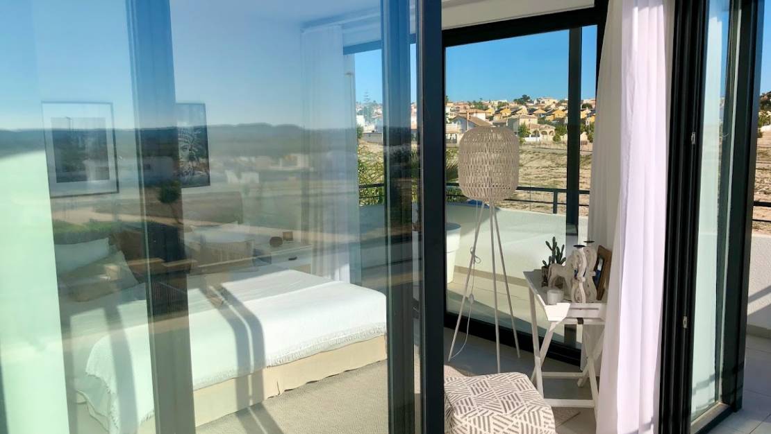 Upon entering the house you have a modern and bright living room thanks to glass curtains and an American-style kitchen, it also has 1 bathroom and 1 bedroom with dressing room, ensuite bathroom and a glass door that gives access to the garden. Through the stairs we go up to the first floor where there are 2 bedrooms with ensuite bathrooms and a balcony with spectacular views. Going up the stairs we access the solarium that has many alternatives to create a chill out area or barbecue area.